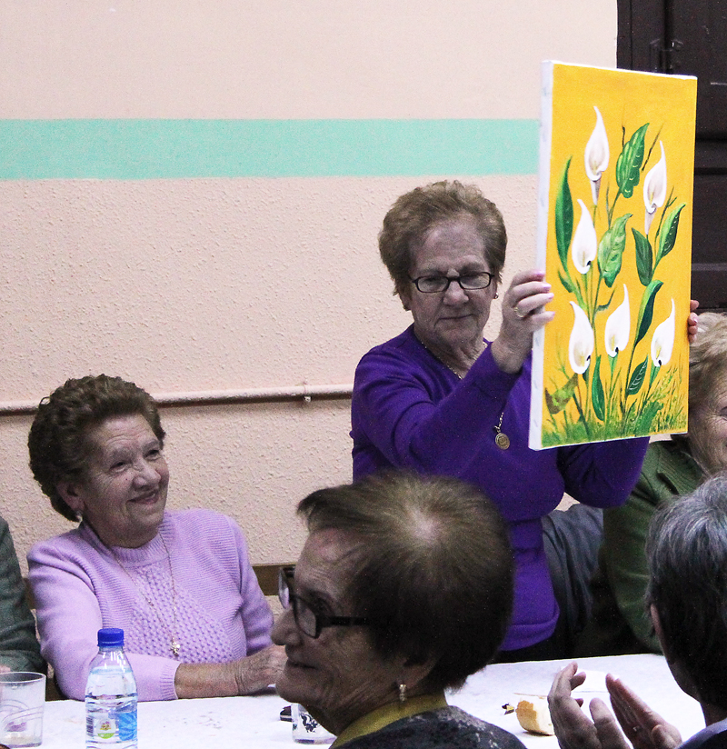 Después de esta cena se continuo cooperando para aumentar la ayuda a este proyecto. Se organizo una rifa de un cuadro donado por una becerrileña entrañable . Y a continuación jugamos unos bingos en que los premios consistían en artículos confeccionados por las personas de Manos Unidas para continuar con nuestra aportación.