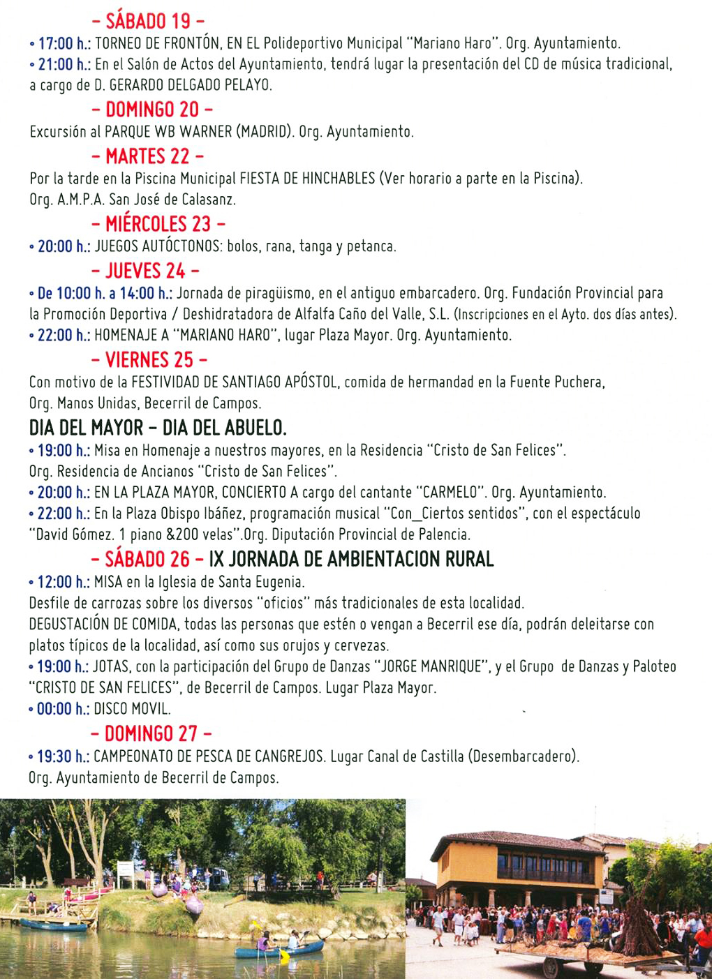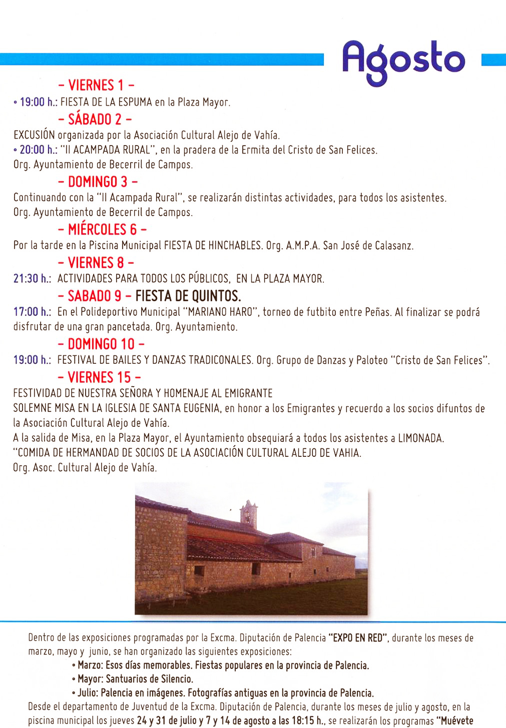 Dentro del programa cultural de Becerril de Campos, y como cada año, la asociación cultural Alejo de Vahía celebra el 15 de agosto su fiesta.