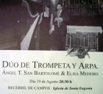 Y el final de este verano cultural se cerró con un festival de música clasica celebrado en la iglesia de <Santa Eugenia a cargo del dúo Elisa Mediero al arpa y Angel T. San Bartolmé a la trompeta.